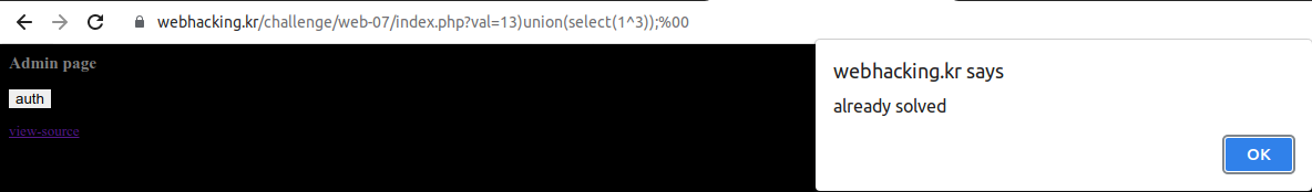 $result=mysqli_query($db,"select lv from chall7 where lv=($go)") or die("nice try!");