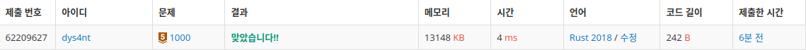 [BOJ/백준][Rust] 1000 A+B 본문