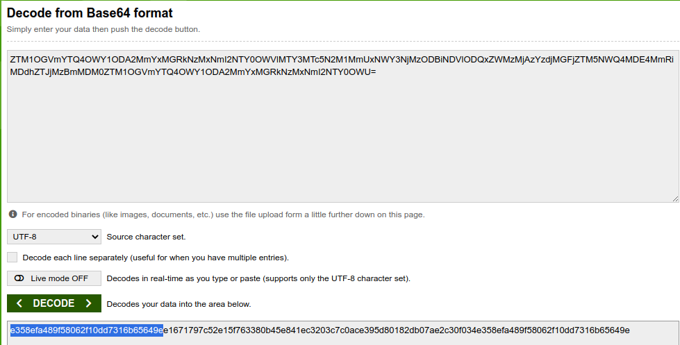 이를 decode해보면 128자 길이의 0~9,a~f까지의 문자로 이루어진 문자열이 나오는데