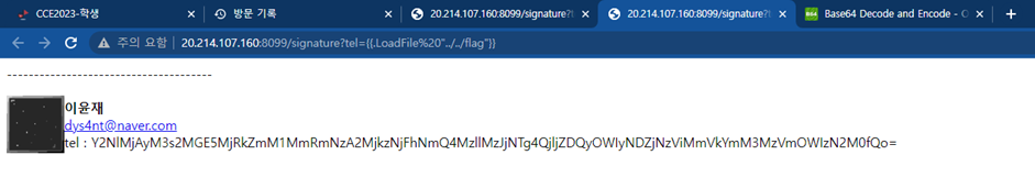 t.Execute(w,&s)를 통해 전달되는 s구조체에는 LoadFile이라는 함수도 포함되어 있으므로 이를 템플릿 구문에서 {{.LoadFile "../../flag"}} 형태로 실행할 수 있고 실행시 플래그가 나온다.