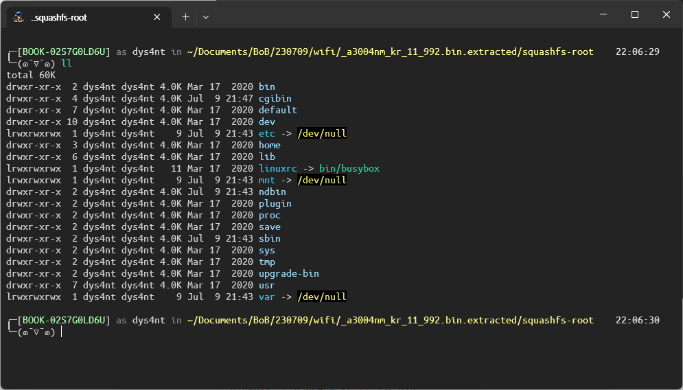 명령어로 extract한 다음 파일시스템을 살펴보았다.
