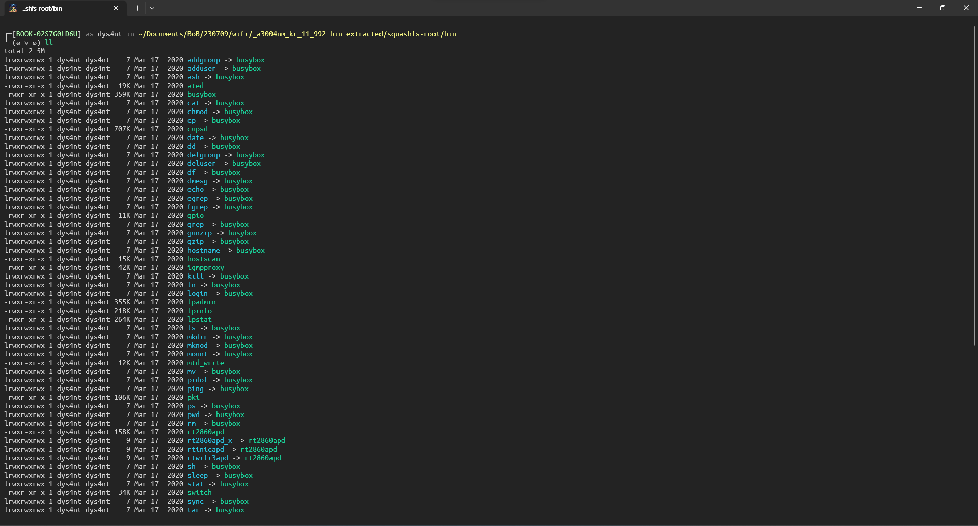 busybox라는 파일에 연결되어있음을 확인할 수 있는데, 공유기에서 busybox라는 소프트웨어가 사용됨을 처음으로 알게 되었다.