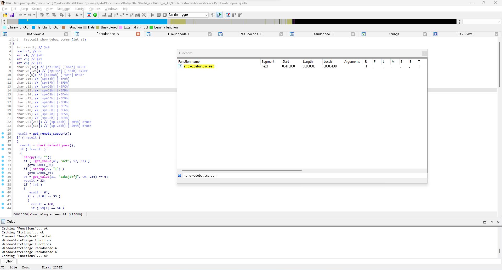 show_debug_screen 함수에서 디버깅에 사용되는 숨겨진 코드를 발견하였다.