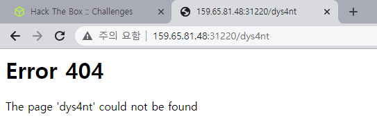 Error 404사이트가 뜨면서 page '입력한 문자열'이 발견되지 않았다고 나온다.
